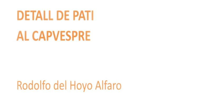 Detall de pati al capvespre és el títol del nou llibre de poesia de l’escriptor colomenc Rodolfo del Hoyo. Serà el volum onze de poemes de l’autor i el llibre trenta-cinc de la seva extensa bibliografia. Aquesta obra, que edita l’Associació Cultural de Poesia Pont del Petroli, actualment està a la impremta i es podrà trobar a les llibreries al març.