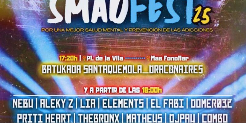 Demà, dissabte 17 de maig, a partir de les 18h, el Mas Fonollar acollirà la tercera edició de l’Smad Fest. El festival reunirà a noves generacions d’artistes, que cantaran per a reivindicar la importància de tenir cura per la salut mental, així com per la prevenció de les addicions.